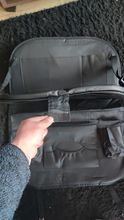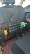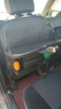 The car seat organizer with foldable table has a strong table and space for two cups. The material is also good.