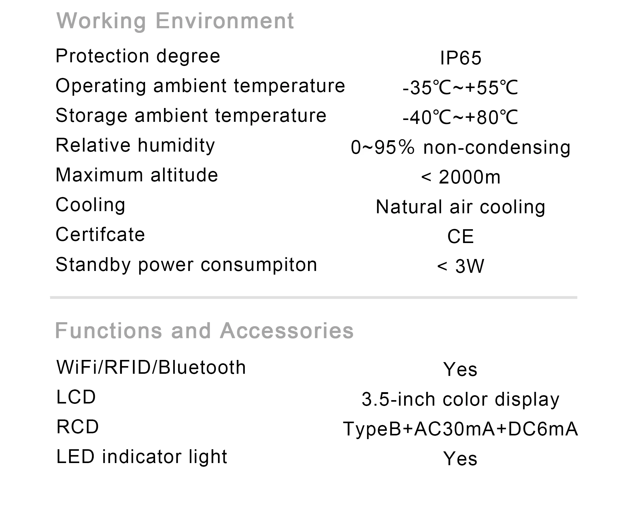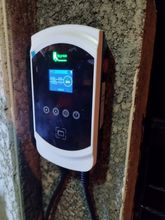 Nice small battery Ev charger now works perfectly, easy to assemble. Nice display and you can set everything on the display and also with the app your phone can set everything. Only works if you have a charging card In the display there are 3 of them.